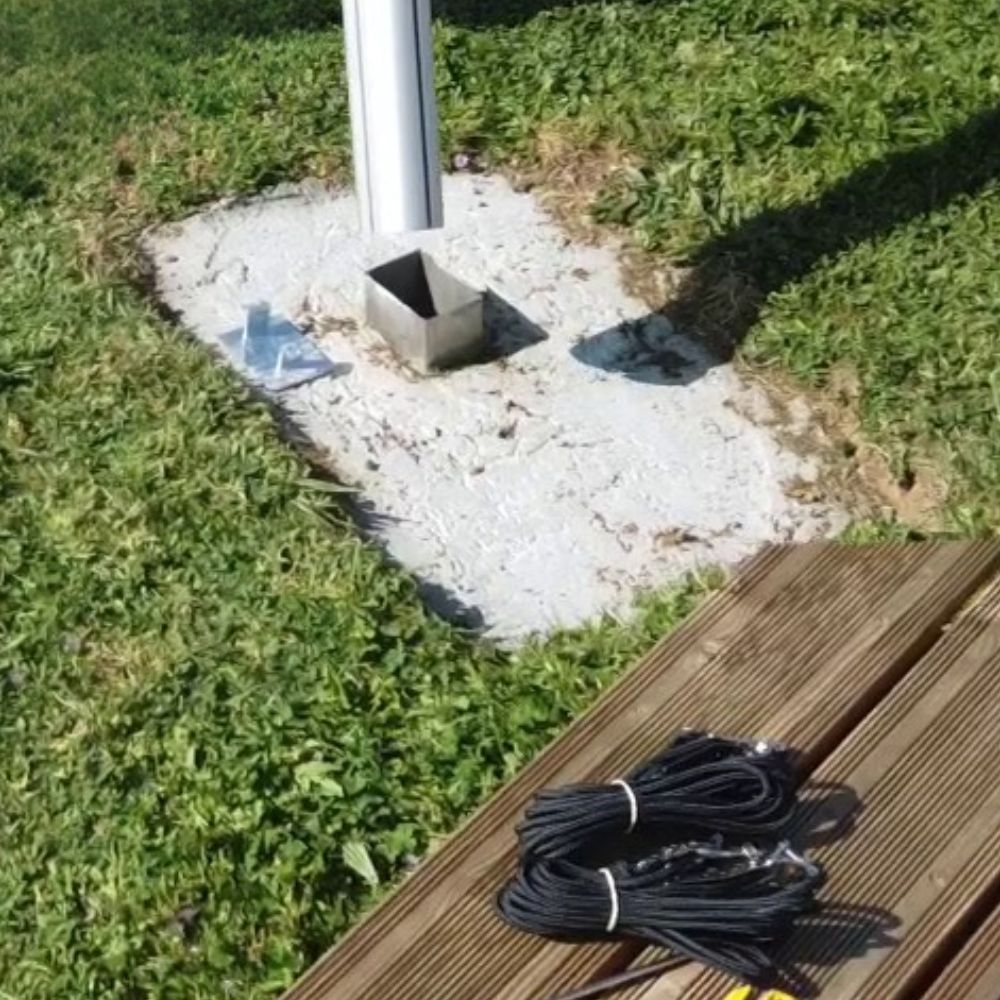 Il permet la mise en place et le maintien du mât tout en facilitant son démontage saisonnier.