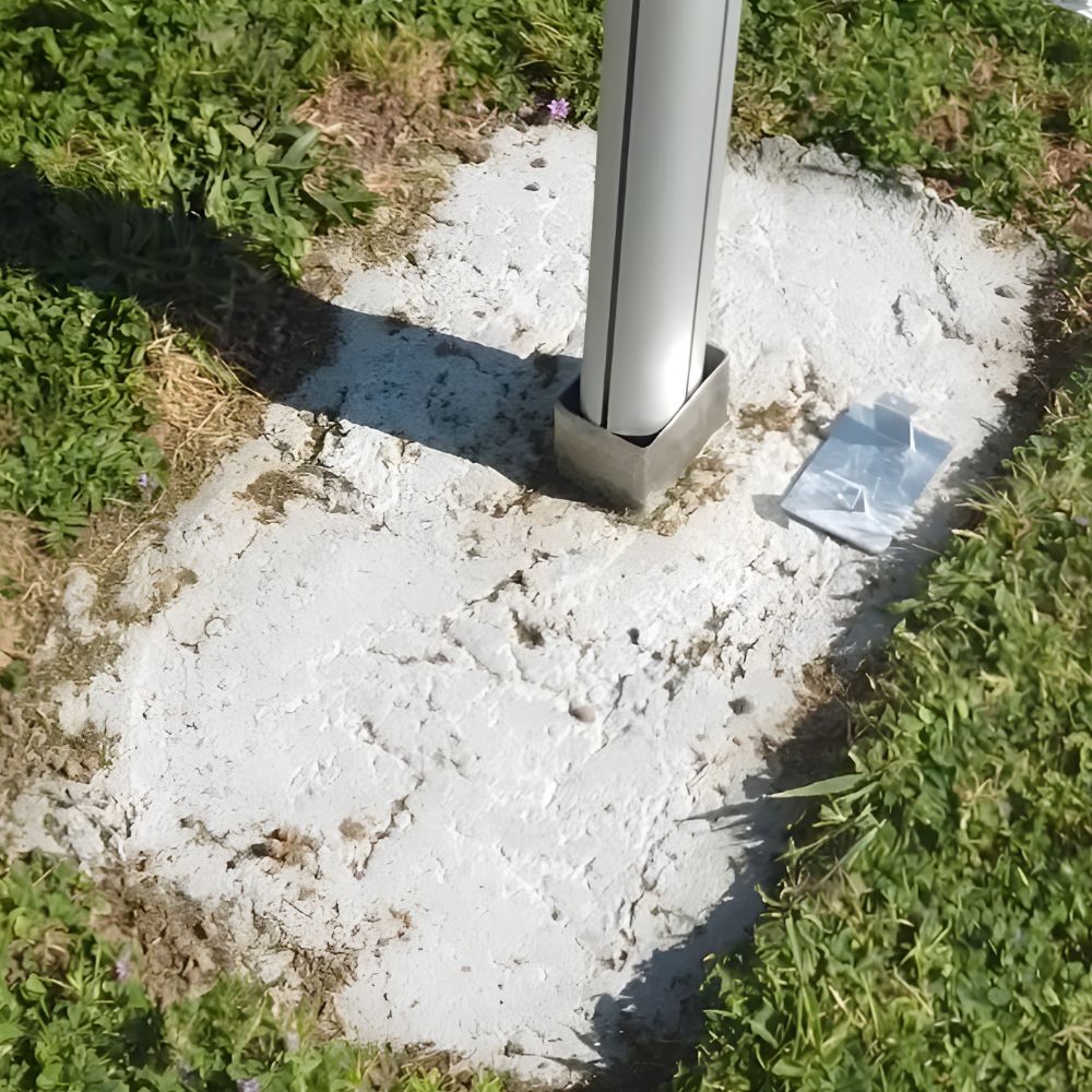 Cette inclinaison intégrée permet de compenser naturellement l’angle du mât et d’obtenir un alignement précis, sans réglage complexe au moment du scellement.