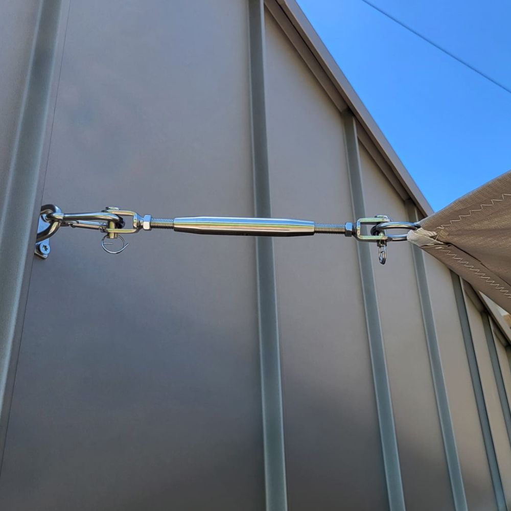 Le système de tension court est une solution compacte et robuste permettant de maintenir votre voile d’ombrage parfaitement tendue, tout en conservant une faible distance entre la voile et la façade pour maximiser la zone d’ombre.